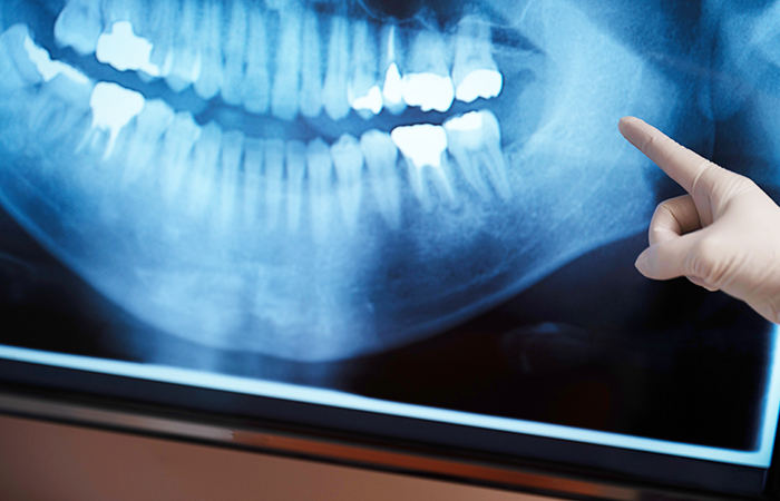 まずは、痛みがある歯やその周囲のレントゲン写真を撮影し、歯の根っこの状態や感染の進行度を確認します。