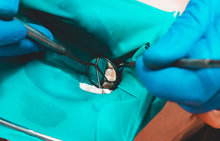感染した神経を取り除いた後は、根管内をきれいに洗浄してから消毒します。根管は細く複雑な形をしているため、時間をかけた精密な処置が必要です。